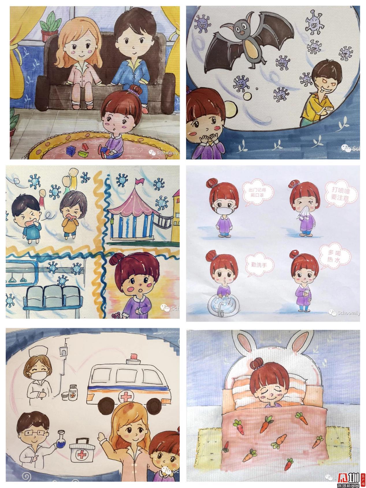 疫情打破了假期的寧靜,桃小的隊(duì)員們紛紛行動(dòng)起來,錄制小視頻,向先鋒致敬,為武漢加油!學(xué)生、家長(zhǎng)們也紛紛發(fā)揮自己的聰明才智,親子齊上陣,一(3)班薛然小朋友的家長(zhǎng)帶著孩子一起繪制防范新冠病毒的繪本,并配音、剪輯、制作成精美的視頻,既幫助了身邊的同學(xué),又在這個(gè)特殊的時(shí)刻陪伴和見證了孩子的成長(zhǎng)。