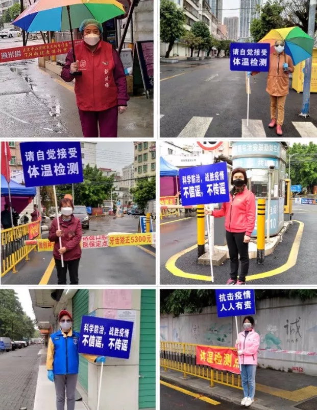 這支“五老”志愿者組成的“姐妹團(tuán)”,每天忙碌于記錄出入車輛、測量體溫、勸導(dǎo)群眾、宣傳防疫知識。隨著近日返深人員的增加,她們的工作量也隨著增大,但她們并沒有覺得累,反而充滿了干勁,忙得不可開交。