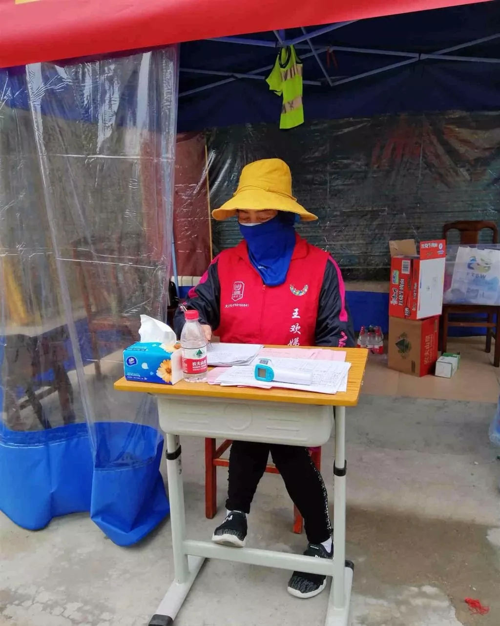在龍崗區(qū)平湖街道力昌社區(qū)防控防疫卡點(diǎn),一名身著紅馬甲的志愿者忙個不停。雖然她的臉被口罩、帽子遮得嚴(yán)嚴(yán)實實,但紅馬甲上寫著得三個大字透露了她的身份:王歡娣。