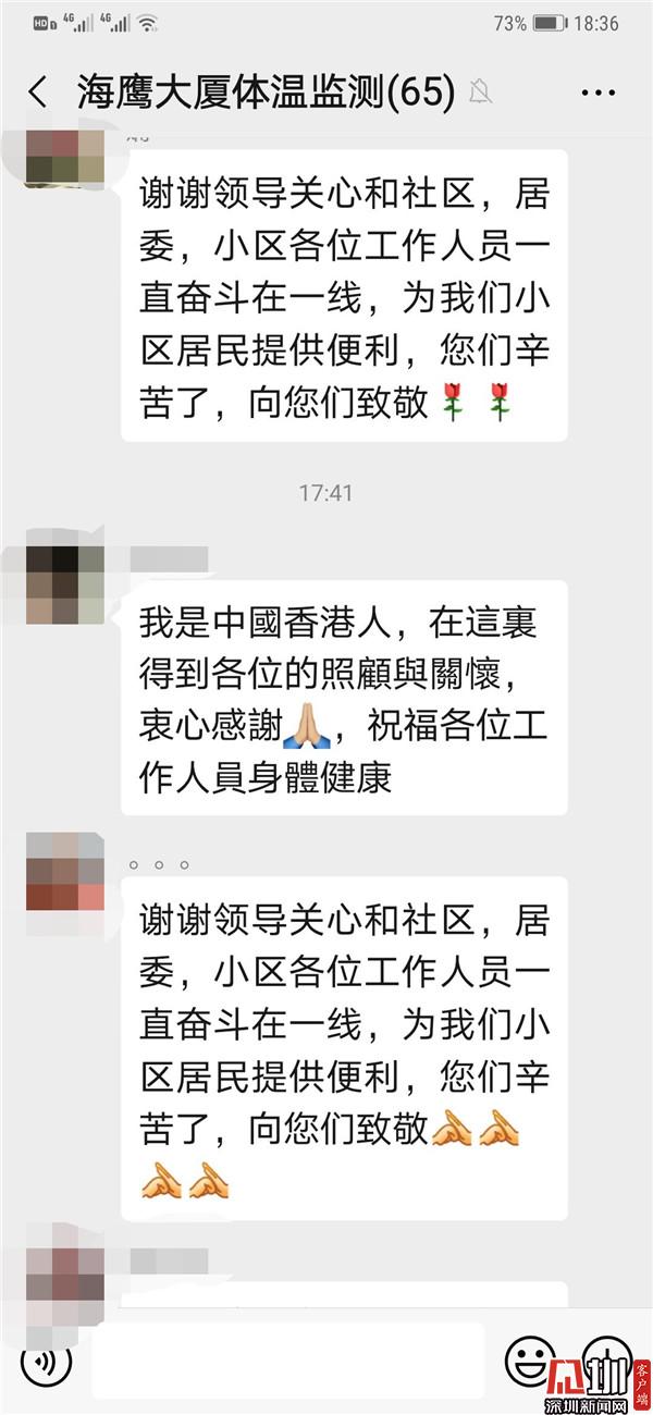 此外,在隔離期間,為方便與居民及時(shí)溝通,保障他們居家生活所需物資,東曉社區(qū)還專門(mén)建立了微信群,隨時(shí)了解海鷹住戶的生活需要和心理變化,以便及時(shí)做好應(yīng)對(duì),并及時(shí)向他們通報(bào)當(dāng)前防控最新進(jìn)展,盡全力保障他們的生活。