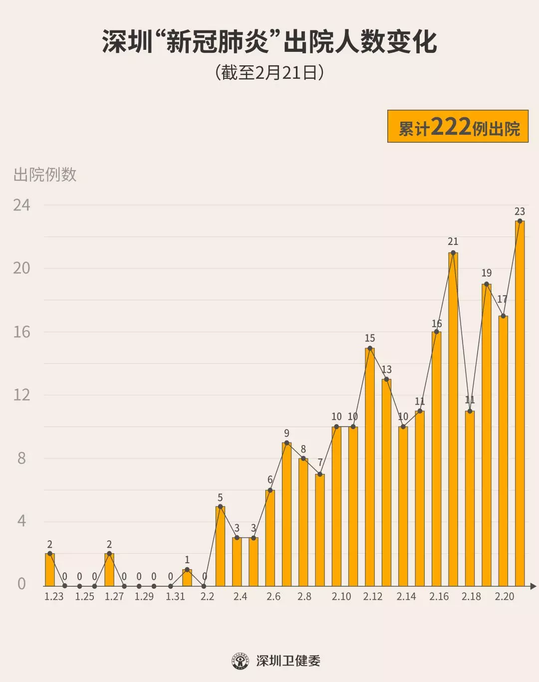 2月21日下午,經(jīng)專家組會診,深圳再有23名新型冠狀病毒肺炎確診患者出院。