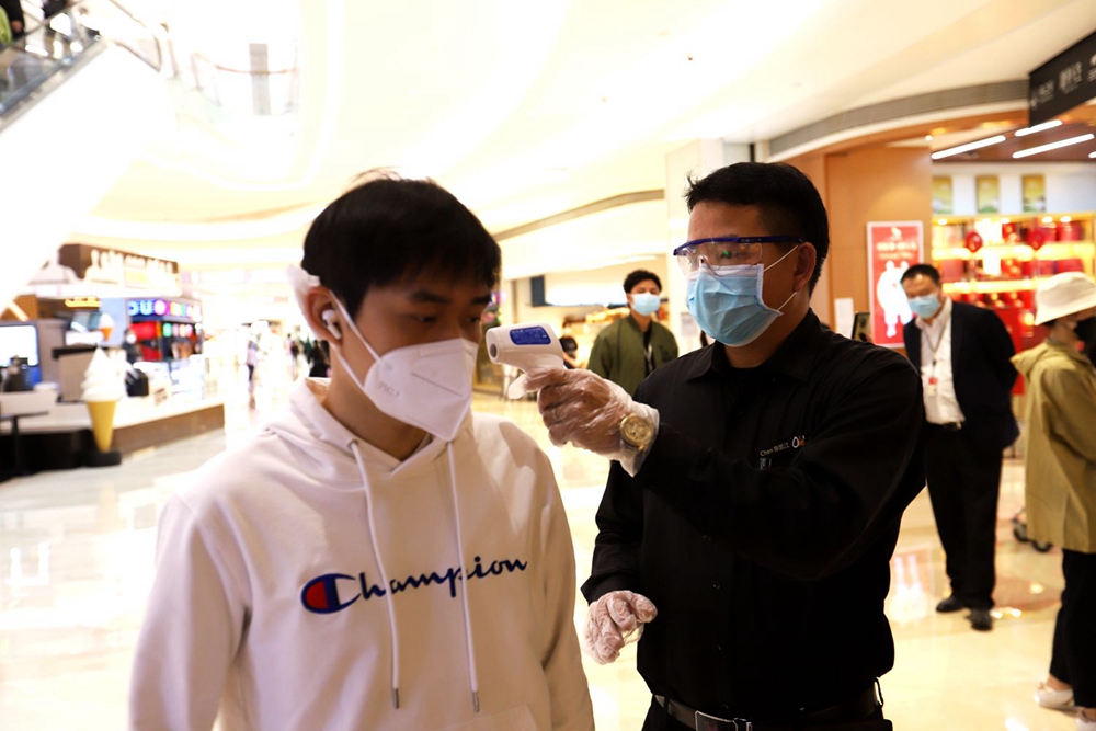 據(jù)悉,壹方城對商場進行圍閉管理,設置10個出入口,并安排專人管理,所有進入商場人員體溫測試為37.3攝氏度以下并佩戴口罩才能進入。