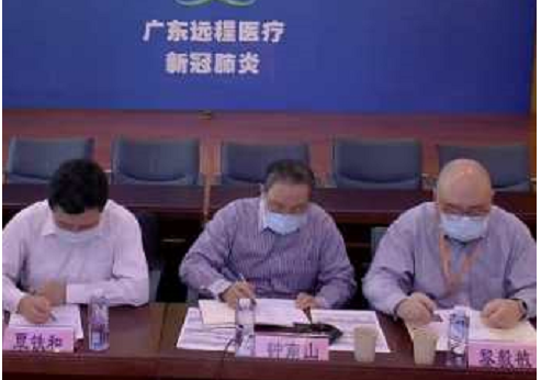 深圳醫(yī)療隊(duì)徐平主任(右一)帶隊(duì)查房,與患者互相鼓勵(lì)。
