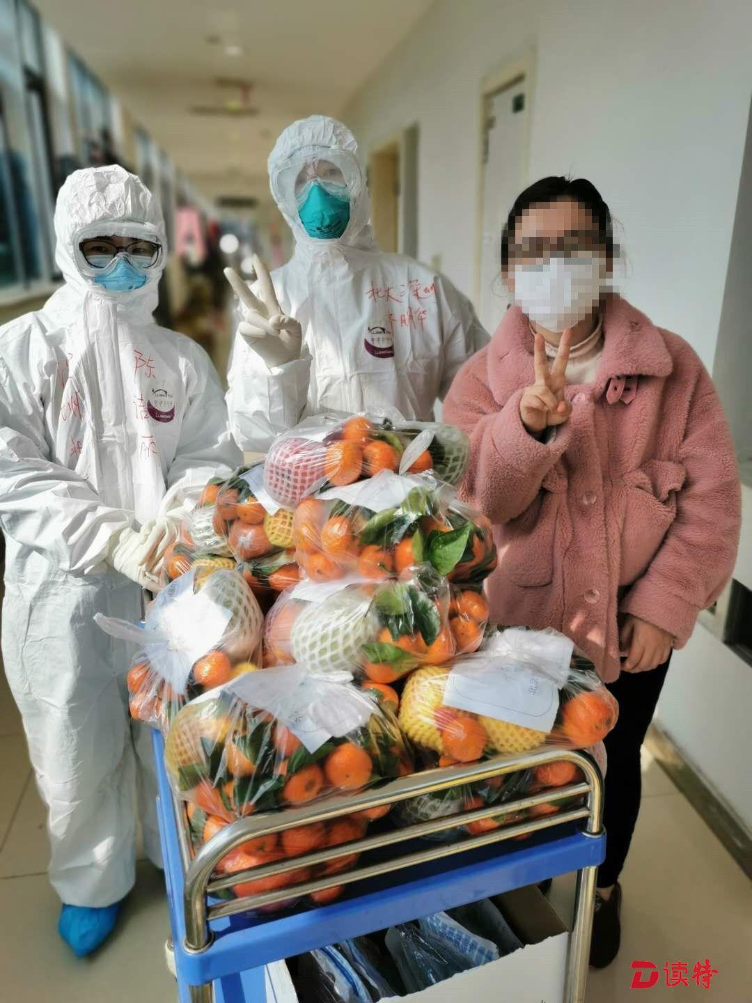 深圳醫(yī)療隊(duì)員為患者發(fā)放沙糖桔與蘋(píng)果。水果也是從廣東遠(yuǎn)道而來(lái),是廣東愛(ài)心人士捐給深圳醫(yī)療隊(duì)的,隊(duì)員們分享給患者朋友。