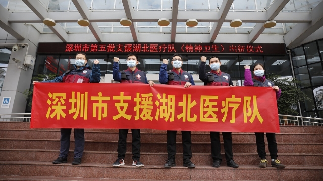 深圳醫(yī)療隊(duì)員與患者合影,互相鼓勵(lì)。