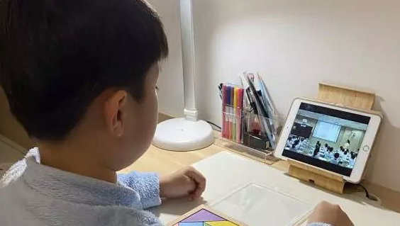 學(xué)生在家上網(wǎng)課。