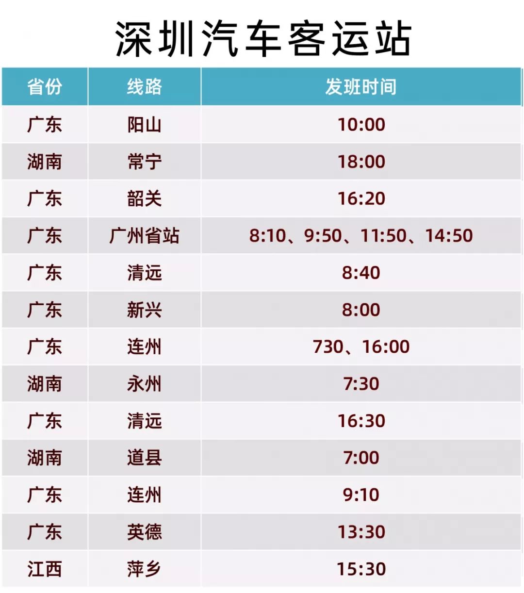 包括深圳汽車客運(yùn)站(銀湖站)、龍崗長(zhǎng)途汽車客運(yùn)站、寶安汽車客運(yùn)站、蛇口汽車客運(yùn)站、沙井汽車站、大鵬汽車客運(yùn)站。