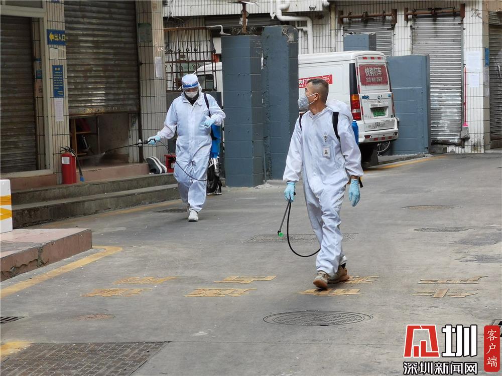 城中村內(nèi),正在進行消毒作業(yè)的工作人員。