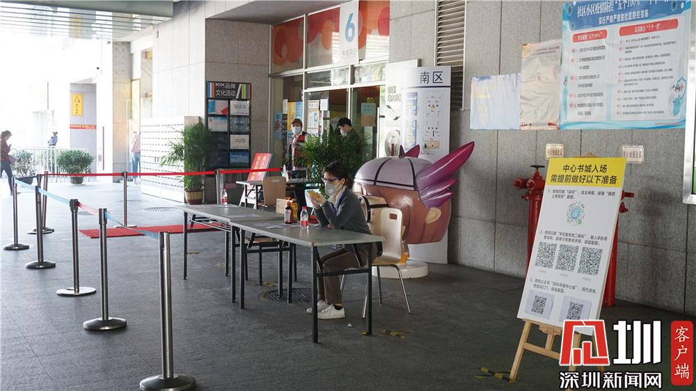 深圳中心書城已開放,進門要進行嚴(yán)格的登記和檢查。