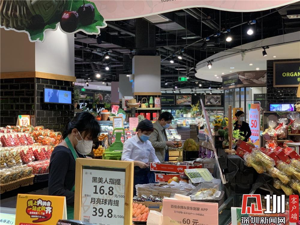 商場內(nèi),工作人員和前來選購的市民皆有佩戴好口罩。