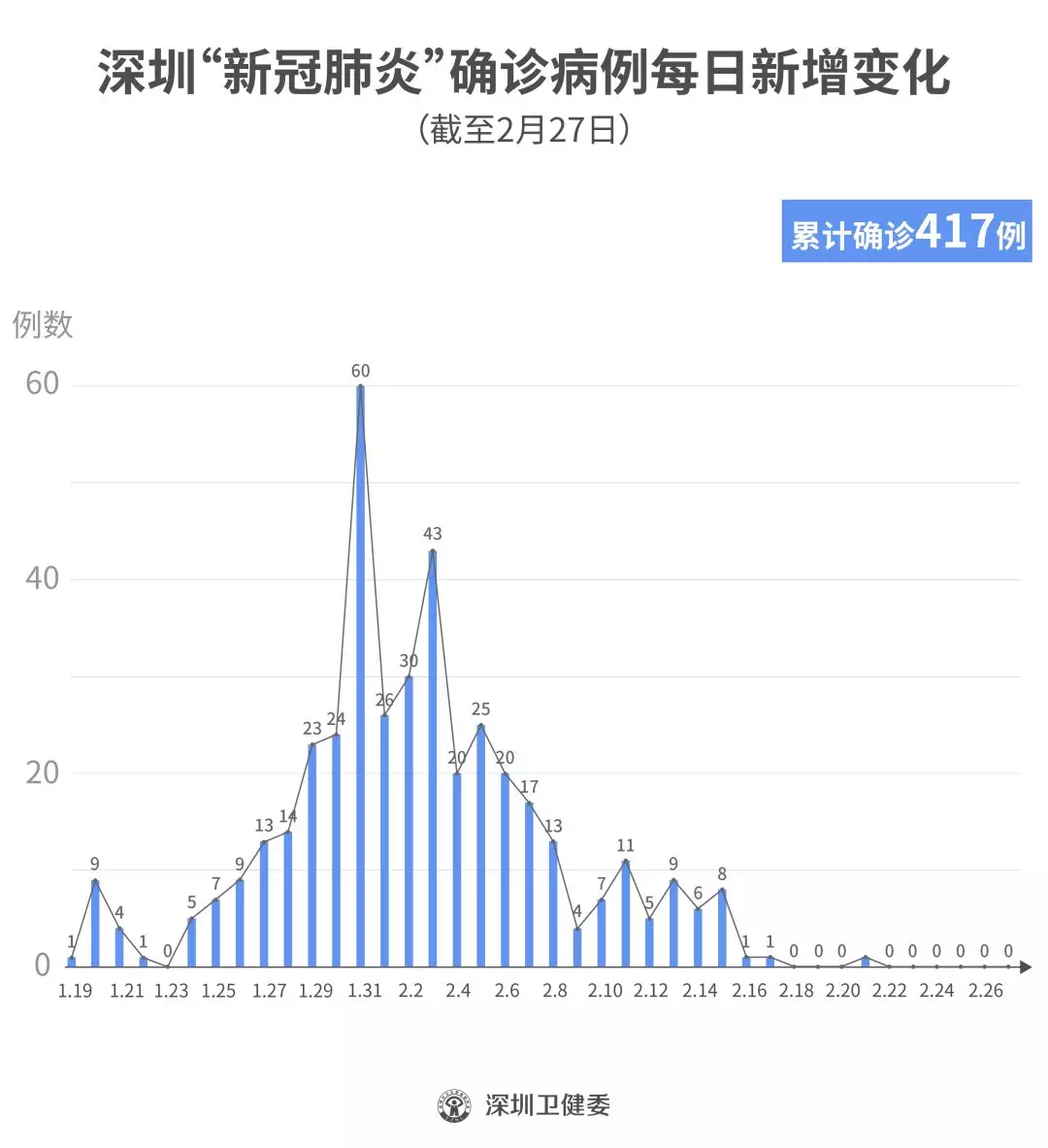 截至2月27日24時,深圳累計報告“新冠肺炎”確診病例417例。2月27日當(dāng)天全市無新增確診病例,當(dāng)天出院病例10例(從26日起不再公布出院個案)。