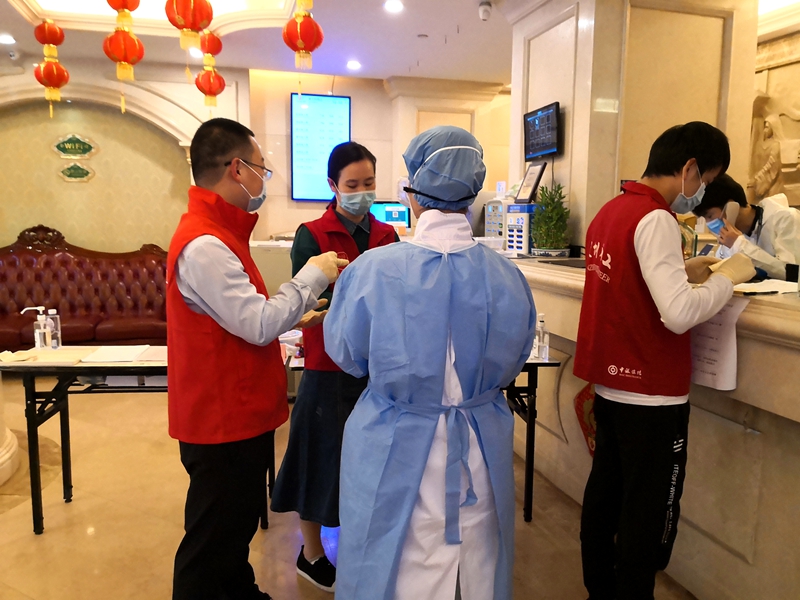 通過福田街道協(xié)調(diào),酒店方緊急召回50名員工,配合驛站建設,但是大部分酒店工作人員對健康驛站并不熟悉,缺乏自我防護知識,對接下來面對的工作不無擔心。