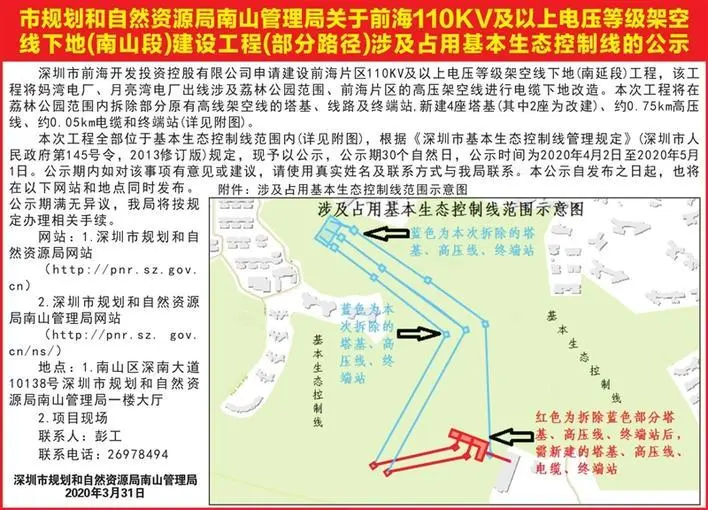 目前這個(gè)高壓線下地項(xiàng)目又傳來新進(jìn)展。近日,消息報(bào)記者從市規(guī)劃和自然資源局南山管理局獲悉,前海片區(qū)110千伏及以上電壓等級架空線下地(南延段)工程,即將啟動建設(shè),現(xiàn)正公示。