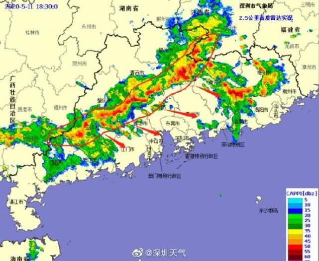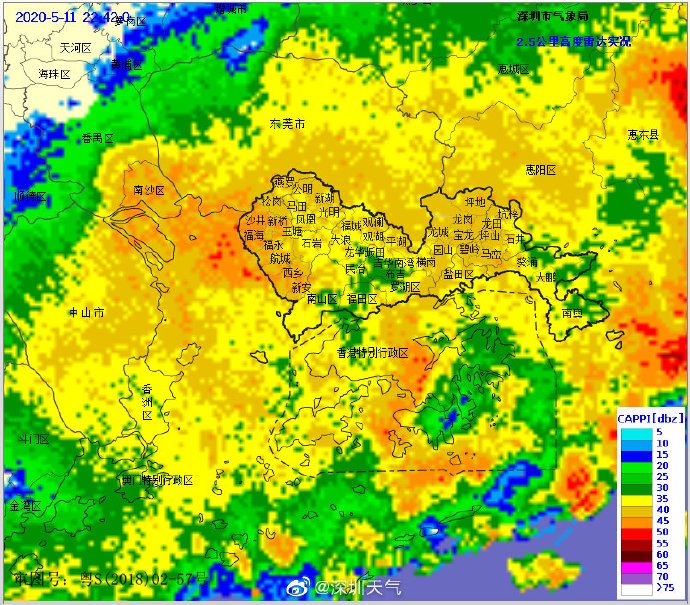 23時(shí)32分:【深圳市取消暴雨黃色和大風(fēng)黃色預(yù)警,雷電預(yù)警繼續(xù)生效】強(qiáng)降雨帶已經(jīng)移出我市,市氣象臺(tái)于2020年05月11日23時(shí)30分在全市取消暴雨黃色、大風(fēng)黃色預(yù)警。全市雷電預(yù)警仍在生效中,未來(lái)1-2小時(shí)仍有陣雨和零散雷暴,市民仍需注意遠(yuǎn)離河道和危險(xiǎn)邊坡等。