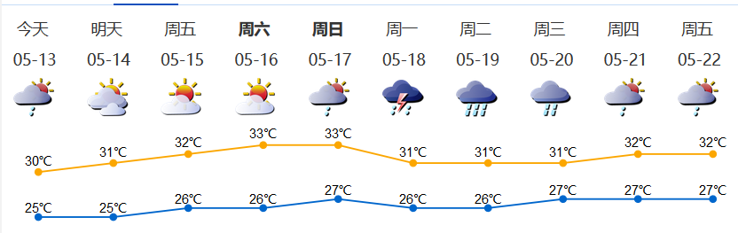 我市陰天間多云,有分散陣雨;氣溫25-30℃;東風2-3級;相對濕度65%-95%。