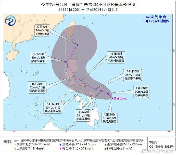 今年第1號臺風“黃蜂”(熱帶風暴級)