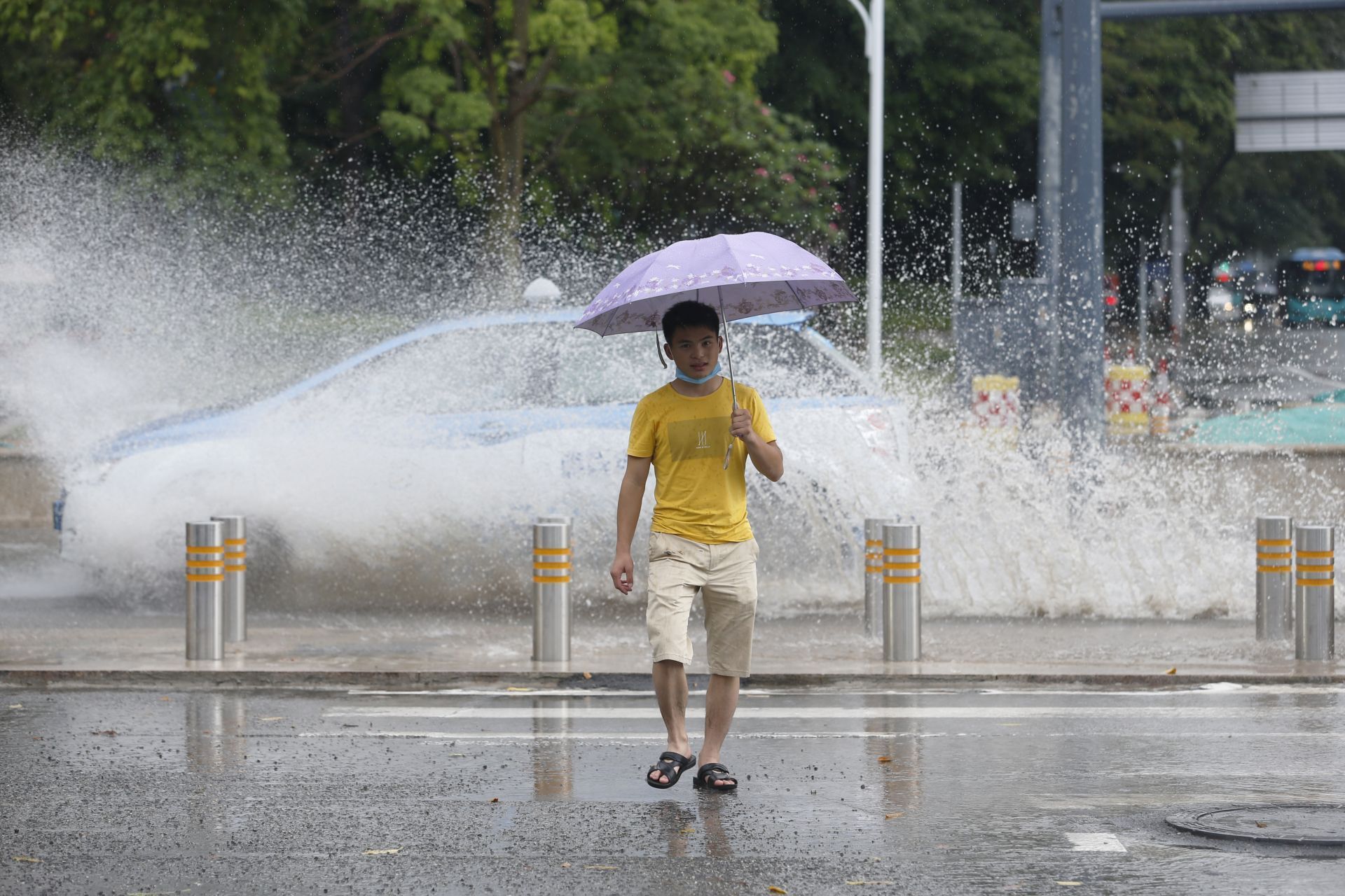 見(jiàn)圳客戶端·深圳新聞網(wǎng)2020年5月26日訊(深圳特區(qū)報(bào)記者 楊浩翰)2020年5月26日中午13:03分,深圳氣象臺(tái)發(fā)布暴雨黃色預(yù)警,福田區(qū)及深圳各個(gè)區(qū)遭遇短時(shí)強(qiáng)降水,降水導(dǎo)致福田區(qū)部分道路水浸,出行的市民十分謹(jǐn)慎經(jīng)過(guò)水浸路面。