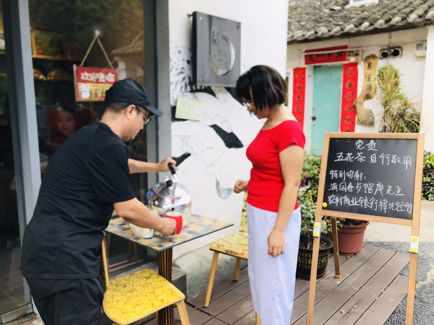 在這次愛(ài)心援助之后,上圍藝術(shù)村更是掀起了一股“愛(ài)心接力”的浪潮,村民和藝術(shù)家們積極地接過(guò)接力棒,紛紛響應(yīng)起來(lái)。國(guó)家級(jí)非遺傳承人張和玉醫(yī)生,為大家按照時(shí)節(jié)、氣候開(kāi)了更專業(yè)的涼茶方子;滿園春農(nóng)莊貢獻(xiàn)了五花茶材料和相關(guān)用品;駐村藝術(shù)家雍明支持制作了“關(guān)于涼茶的愛(ài)心拉力”公示牌貼在了涼茶提供處……