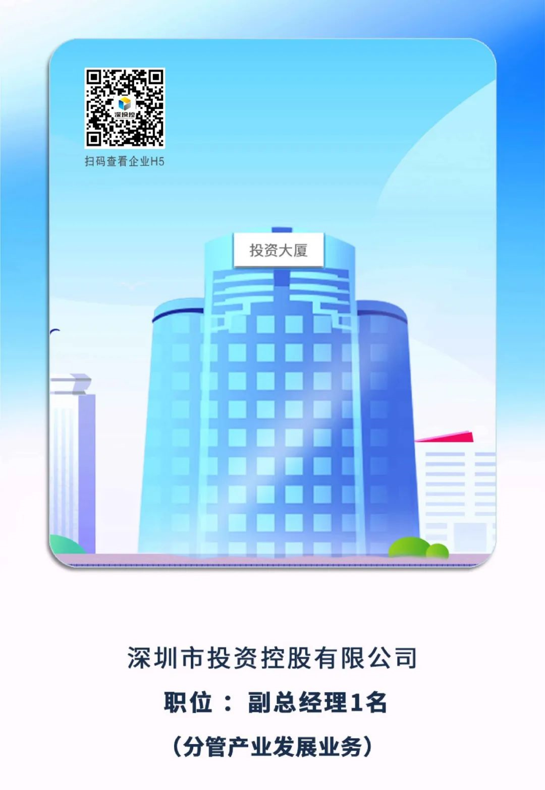 2、深圳市投資控股有限公司副總經(jīng)理1名(分管產(chǎn)業(yè)發(fā)展業(yè)務(wù))