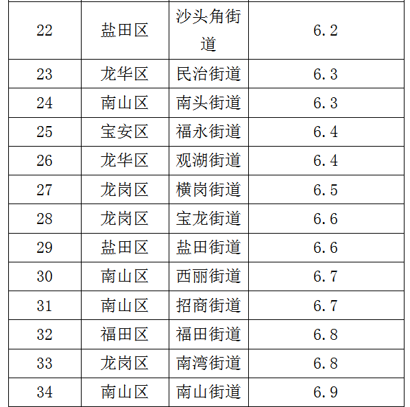 各街道及各區(qū)具體排名見(jiàn)下表。