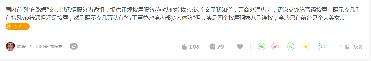 據(jù)報(bào)道,浙江一家SPA俊顏館初次交錢(qián)有普通按摩,暗示客戶(hù)充值有特殊服務(wù),實(shí)際上是高級(jí)一點(diǎn)的按摩,再暗示充幾萬(wàn)可享受“帝王至尊密境內(nèi)部多人體驗(yàn)”,其實(shí)就是四個(gè)按摩阿姨八手連按。