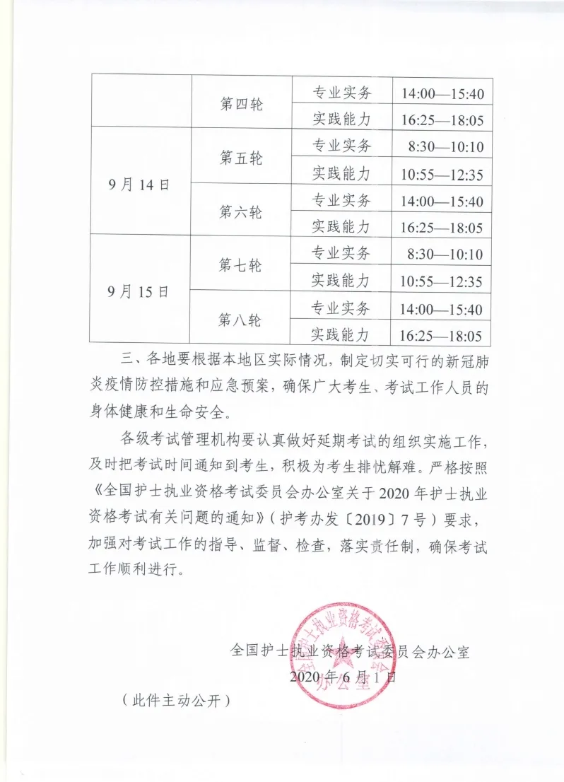 6月1日,全國(guó)護(hù)士執(zhí)業(yè)資格考試委員會(huì)辦公室印發(fā)《關(guān)于延期舉行2020年護(hù)士執(zhí)業(yè)資格考試的通知》,2020年護(hù)士執(zhí)業(yè)資格考試延期至9月12日—15日舉行。