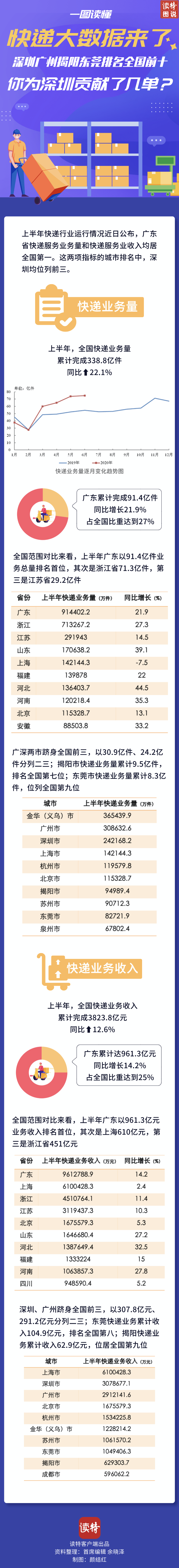 一圖讀懂|快遞大數(shù)據(jù)來了 深圳廣州揭陽東莞排名全國前十 你為深圳貢獻了幾單?