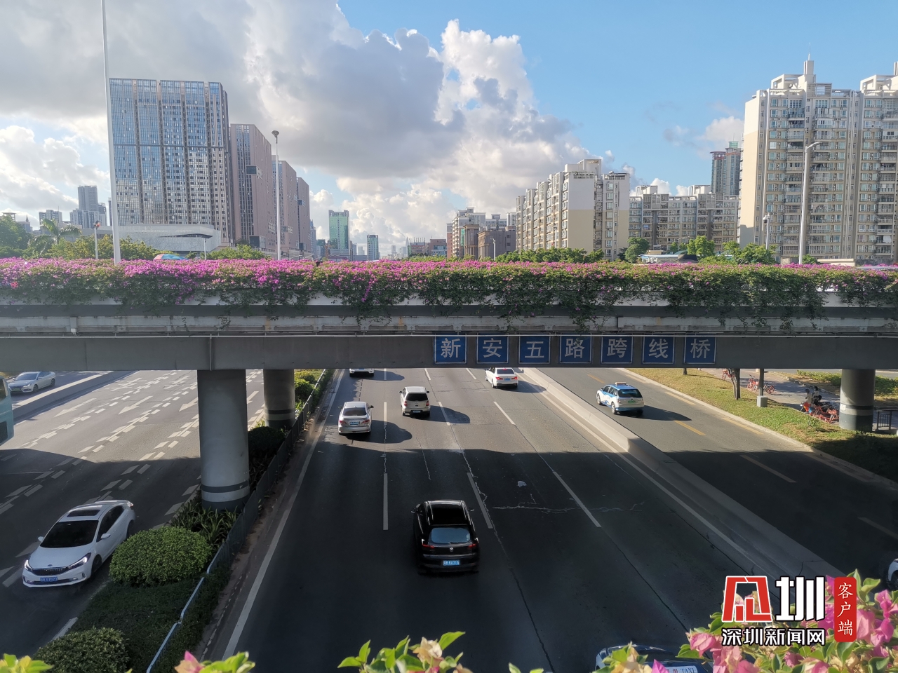 【廣深公路】上午8時(shí),記者在位于新安五路和廣深公路的天橋拍攝實(shí)時(shí)交通情況,目前廣深公路的車流沒有造成擁堵。