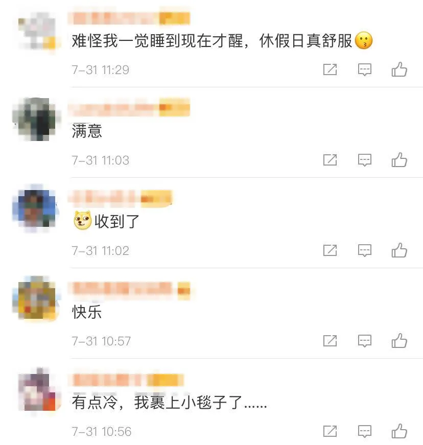 很多小伙伴感覺涼快了不少~“舒服~”“冷得我都裹上小毯子了~”