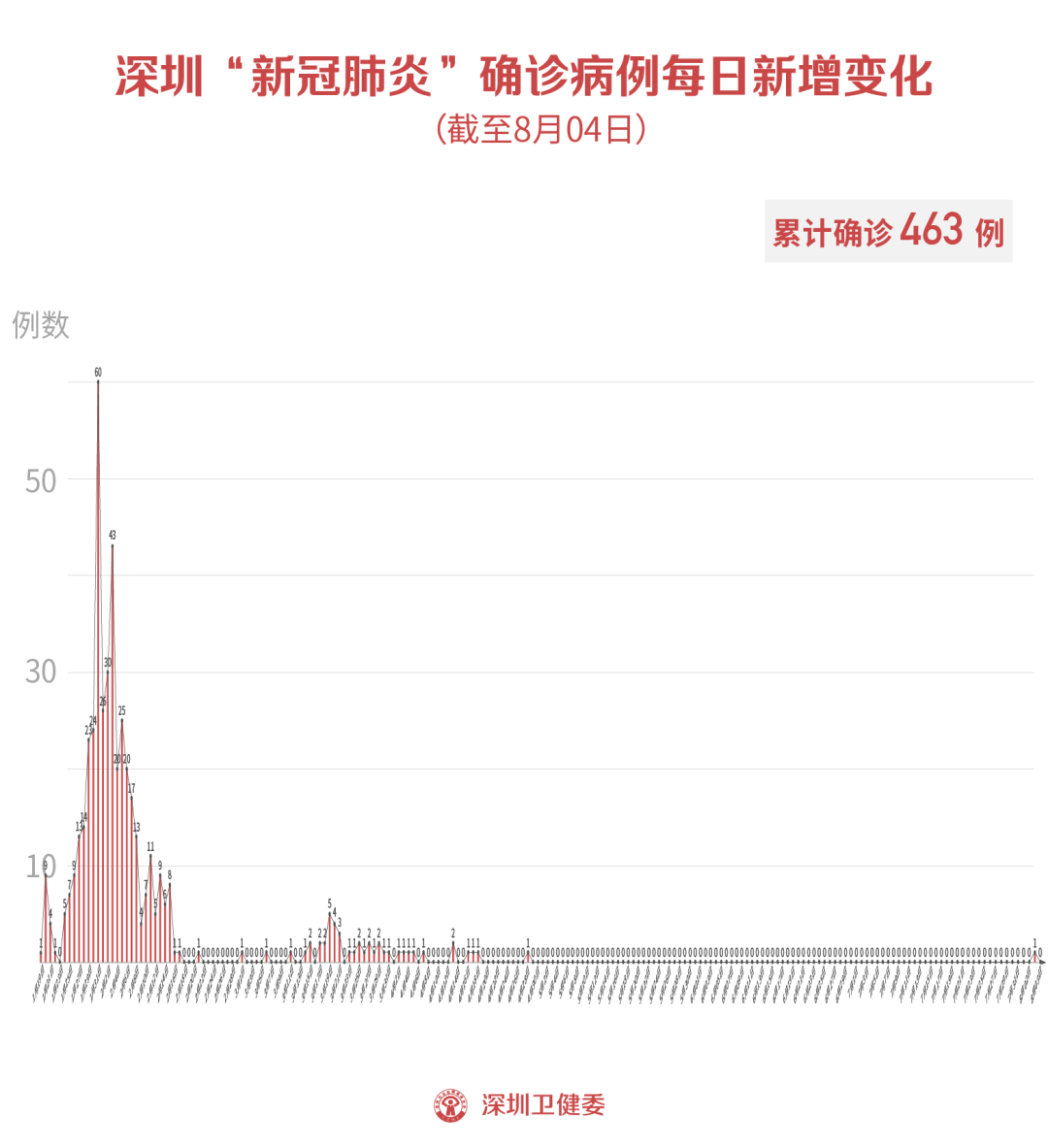 截至8月4日24時(shí),深圳市累計(jì)報(bào)告新冠肺炎確診病例463例。目前在院1例。