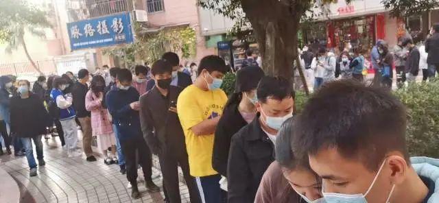 ▲坂田星河銀湖谷樓下也排起長長的核酸檢測隊伍,除了本地居民,人群里還有附近工地的建筑行業(yè)從業(yè)者、外賣小哥等。