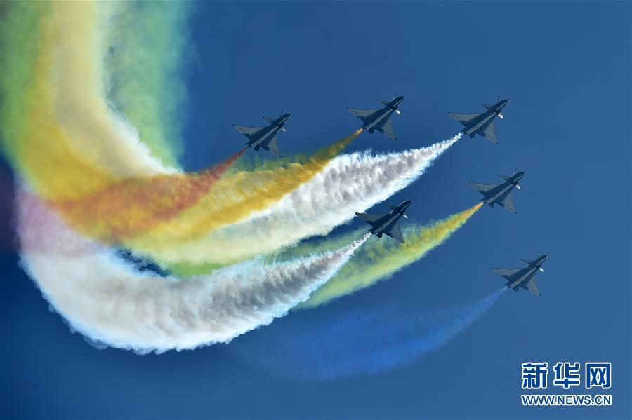 11月6日,中國空軍八一飛行表演隊在航展現場進行飛行表演。當日,第十二屆中國國際航空航天博覽會在珠海開幕。新華社記者梁旭攝