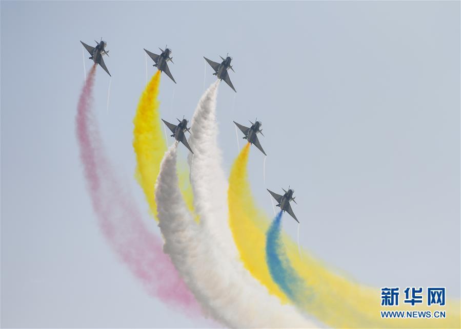 11月6日,中國(guó)空軍八一飛行表演隊(duì)在航展現(xiàn)場(chǎng)進(jìn)行飛行表演。當(dāng)日,第十二屆中國(guó)國(guó)際航空航天博覽會(huì)在珠海開(kāi)幕。新華社記者鄧華攝
