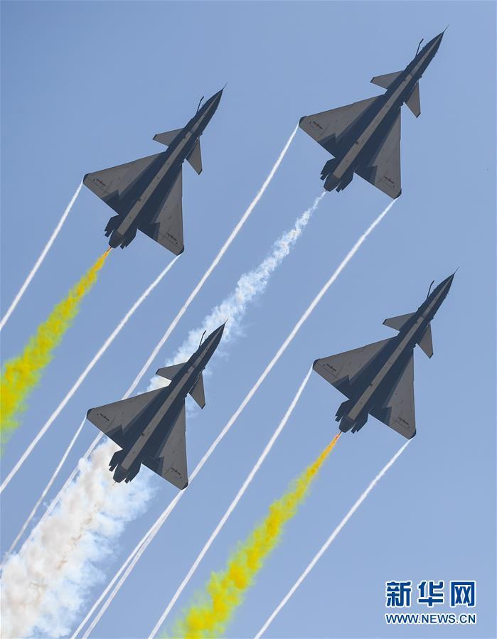 11月6日,中國空軍八一飛行表演隊(duì)在航展現(xiàn)場(chǎng)進(jìn)行飛行表演。當(dāng)日,第十二屆中國國際航空航天博覽會(huì)在珠海開幕。新華社記者鄧華攝