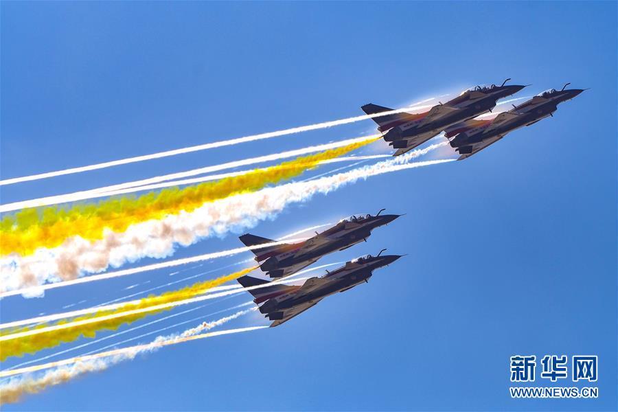 11月6日,中國空軍八一飛行表演隊在航展現(xiàn)場進行飛行表演。當日,第十二屆中國國際航空航天博覽會在珠海開幕。新華社記者楊光攝