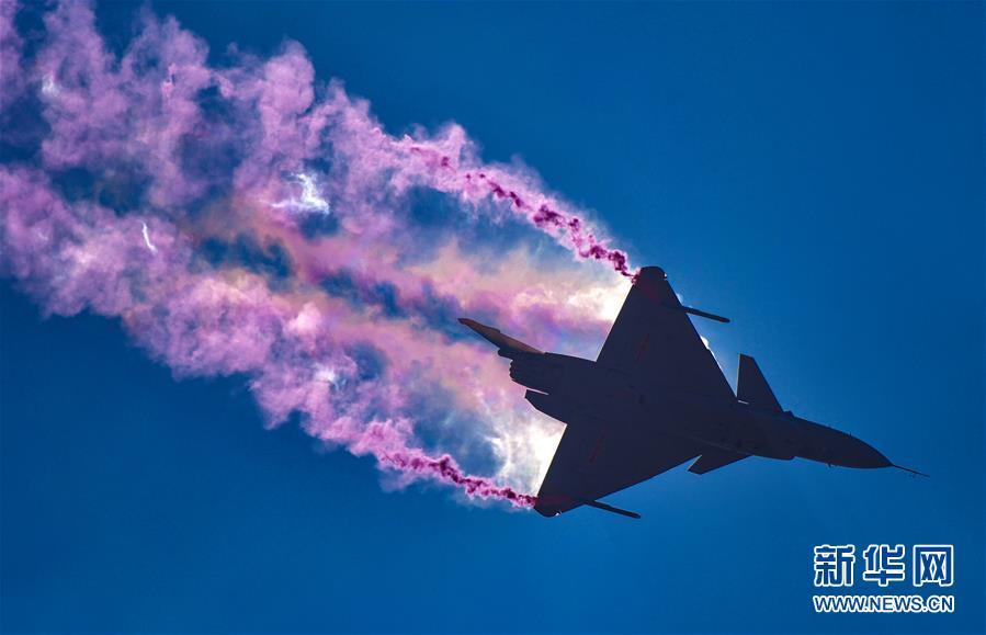 11月6日,殲-10B在飛行表演中。新華社記者楊光攝