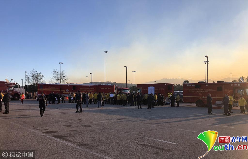 圖為文圖拉郡火場(chǎng)附近多輛消防車集結(jié)。