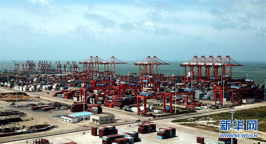 這是廣西欽州保稅港區(qū)碼頭(7月1日無(wú)人機(jī)拍攝)。新華社記者 張愛(ài)林 攝