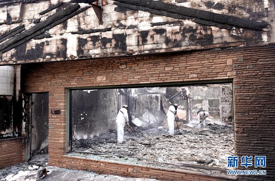 11月20日,在美國加利福尼亞州比尤特縣天堂鎮(zhèn),救援人員在災(zāi)區(qū)工作。