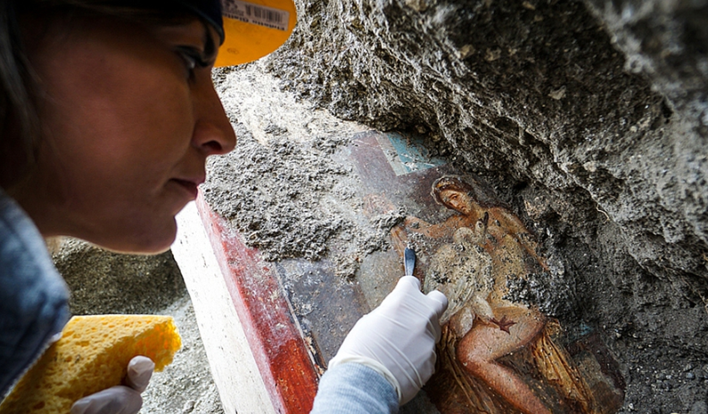 龐貝古城發(fā)現(xiàn)珍貴壁畫“麗達與天鵝” ...
