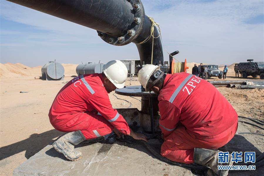 11月21日,在埃及明亞省,中國(guó)中曼石油公司的工人在鉆井現(xiàn)場(chǎng)作業(yè)。 2017年,中國(guó)中曼石油公司與阿聯(lián)酋海灣集團(tuán)簽訂合同,為該集團(tuán)在埃及沙漠中的大型農(nóng)業(yè)項(xiàng)目鉆探300口水井。根據(jù)合同,中曼石油將先期完成30口井的試鉆探,剩余水井將以每月7口的速度交付。目前有超過(guò)200名工人在鉆井現(xiàn)場(chǎng)作業(yè),大部分是埃及本地人。 新華社記者李碧念攝