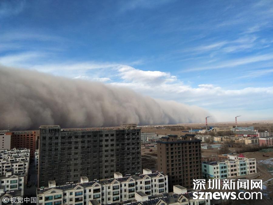甘肅張掖沙塵暴來(lái)襲 “沙墻”高達(dá)上百米