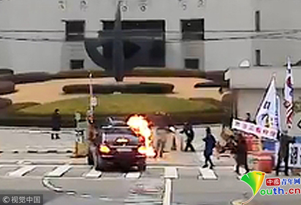 驚險!韓國最高法院院長上班途中被男子扔燃燒瓶