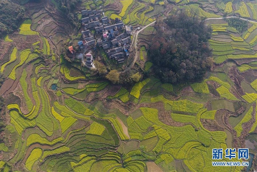 廣西融安縣東起鄉(xiāng)長(zhǎng)豐村的田園春色(3月10日無人機(jī)拍攝)。 近日,隨著氣溫持續(xù)回升,廣西融安縣境內(nèi)的油菜花開放,春意盎然。 新華社記者 黃孝邦 攝