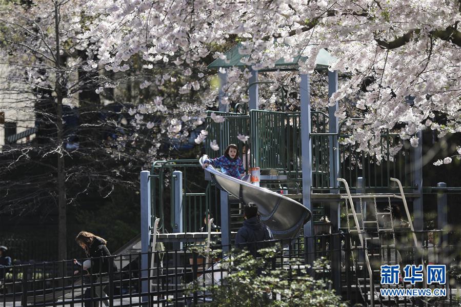 4月16日,孩子們在美國紐約中央公園的一處游樂場玩耍。 新華社記者 王迎 攝