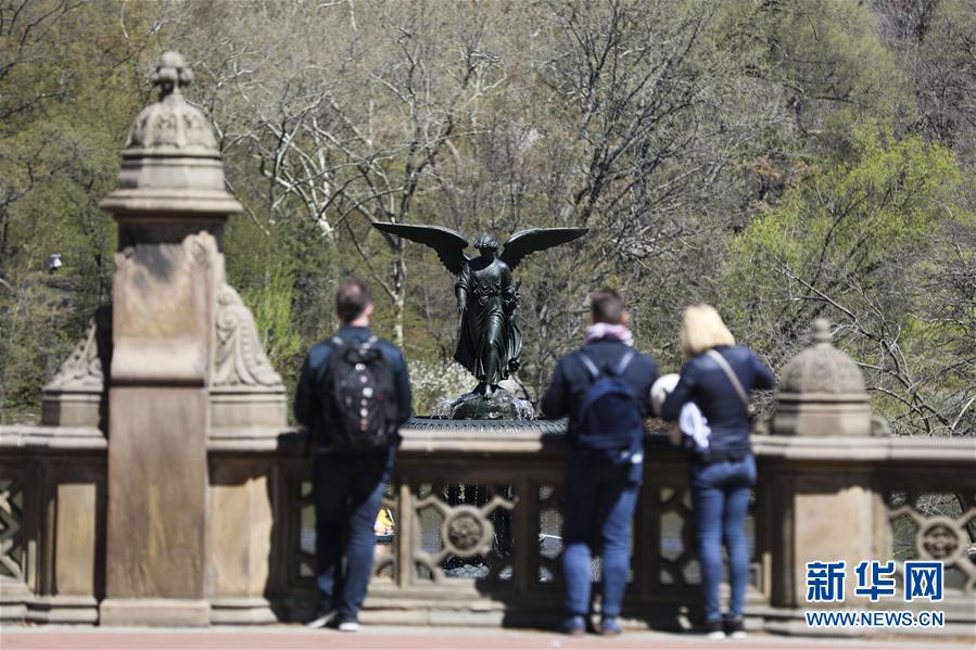 4月16日,人們?cè)诿绹~約中央公園游覽。 新華社記者 王迎 攝