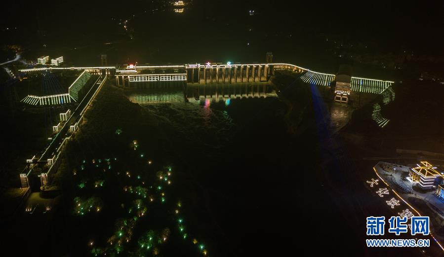 這是位于廣西大化縣境內(nèi)的大化水電站夜景(10月21日無人機拍攝)。新華社記者張愛林?jǐn)z