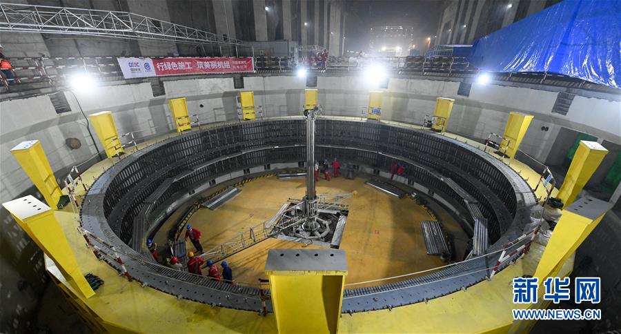 烏東德水電站左岸地下電站主廠房內(nèi)的6號(hào)機(jī)組正在建設(shè)中(5月30日攝)。新華社記者陳曄華攝