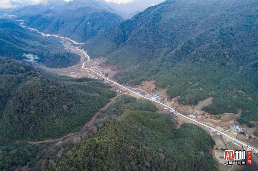 圖為2019年3月11日,陜西漢中鎮(zhèn)巴縣三元鎮(zhèn)。天坑就在其左側(cè)山里。