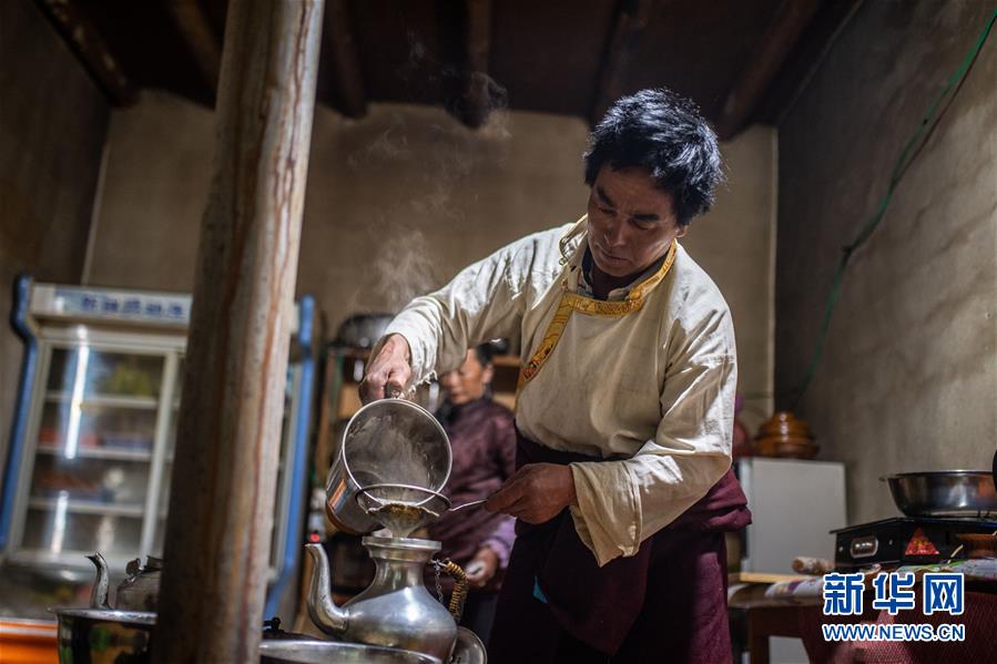 清晨,藏族漢子斯那定主為客人準(zhǔn)備早餐(3月15日攝)。新華社記者 胡超 攝